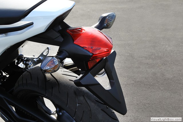 Para assegurar uma pilotagem mais fácil na cidade, as bonitas rodas são de liga leve de 17’’. Além disso, a esportividade do modelo é reforçada pelos pneus street de configuração 120/70 na dianteira e 160/60, na traseira.