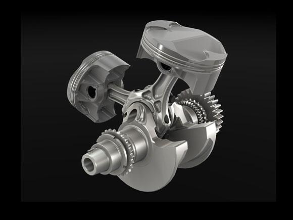 O corpo do virabrequim tem rolamentos em concha no seu eixo, sistema já usado pela Ducati no motor Desmosedici RR. Remover os rolamentos de rolos permitiu um aumento no diâmetro do comando, para maior rigidez e um aumento da seção do cárter em torno da área do mancal principal, para melhorar a resistência do Superquadro em casos extremos. |